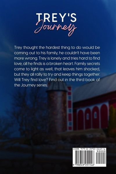 Trey finds coming out harder than he thought it might be, some family members are too much help while others seem to pull away. Finding love isn't a piece of cake either. From family struggles to broken hears this story will keep your attention from cover to cover.