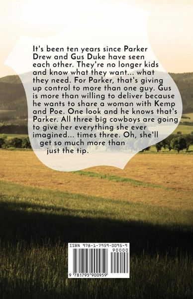 It's been ten years since Parker Drew and Gus Duke have seen each other, but it's like no time has passed. They were hot and heavy back then and the spark's still there now. But they're no longer fumbling kids and they know what they want... what they need. For Parker, that's giving up control to more than one guy. Gus is more than willing to deliver because he wants to share a woman with Kemp and Poe. One look and he knows that's Parker. All three big cowboys are going to give her everything she ever imagined... times three. Oh, she'll get so much more than just the tip. Remember: With a Vanessa Vale book, one cowboy is never enough. In this smokin' hot series, each heroine gets an extra helping (or two) of Grade-A Beefcake.