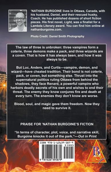 The law of three is unbroken: three vampires form a coterie, three demons make a pack, and three wizards are a coven. That is how it has always been, and how it was always to be. But Luc, Anders, and Curtis-vampire, demon, and wizard-have cheated tradition. Their bond is not coterie, pack, or coven, but something else. Thrust into the supernatural politics ruling Ottawa from behind the shadows, they face Renard, a powerful vampire who harbors deadly secrets of his own and wishes to end their threat. The enemy they know conjures fire and death at every turn. The enemies they don't know are worse. Blood, soul, and magic gave them freedom. Now they need to survive it.