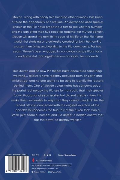 Steven, along with nearly five hundred other humans, has been offered the opportunity of a lifetime. An advanced alien species known as the Pic have proposed a test to see whether humans and Pic can bring their two societies together for mutual benefit. Steven will spend the next thirty years of his life on the Pic home world, first studying at a university created for joint human-Pic classes, then living and working in the Pic community. For two years, Steven's been engaged in worldwide competitions for a candidate slot, and against enormous odds, he succeeds. But Steven and his new Pic friends have discovered something worrying... disasters have recently occurred both on Earth and Whistlestop, and no one seems to be able to identify the reasons behind them. One of Steven's classmates has concerns about the portal technology the Pic use for transport, that their species found thousands of years earlier but did not create - does this make them vulnerable in ways that they cannot predict? Are the recent attacks connected with the original inventors of the portals? This becomes the true test of the fusion trial: Can a small, joint team of humans and Pic defeat a hidden enemy that has the power to destroy worlds?