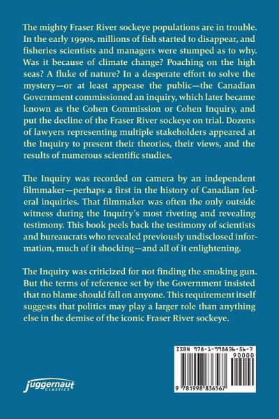 The mighty Fraser River sockeye populations are in trouble. In the early 1990s, millions of fish started to disappear, and fisheries scientists and managers were stumped as to why. Was it because of climate change? Poaching on the high seas? A fluke of nature? In a desperate effort to solve the mystery¿-¿or at least appease the public¿-¿the Canadian Government commissioned an inquiry, which later became known as the Cohen Commission or Cohen Inquiry, and put the decline of the Fraser River sockeye on trial. Dozens of lawyers representing multiple stakeholders appeared at the Inquiry to present their theories, their views, and the results of numerous scientific studies. The Inquiry was recorded on camera by an independent filmmaker¿-¿perhaps a first in the history of Canadian federal inquiries. That filmmaker was often the only outside witness during the Inquiry's most riveting and revealing testimony. This book peels back the testimony of scientists and bureaucrats who revealed previously undisclosed information, much of it shocking¿-¿and all of it enlightening. The Inquiry was criticized for not finding the smoking gun. But the terms of reference set by the Government insisted that no blame should fall on anyone. This requirement itself suggests that politics may play a larger role than anything else in the demise of the iconic Fraser River sockeye.