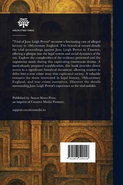 "Trial of Jane Leigh Perrot" recounts a fascinating case of alleged larceny in 18th-century England. This historical record details the trial proceedings against Jane Leigh Perrot in Taunton, offering a glimpse into the legal system and social dynamics of the era. Explore the complexities of the evidence presented and the arguments made during this captivating courtroom drama. A meticulously prepared republication, this book provides direct access to a significant historical document, allowing readers to delve into a true crime story that captivated society. A valuable resource for those interested in legal history, 18th-century England, and true crime narratives. Discover the details surrounding Jane Leigh Perrot's experience as the trial unfolds. This work has been selected by scholars as being culturally important, and is part of the knowledge base of civilization as we know it. This work is in the public domain in the United States of America, and possibly other nations. Within the United States, you may freely copy and distribute this work, as no entity (individual or corporate) has a copyright on the body of the work. Scholars believe, and we concur, that this work is important enough to be preserved, reproduced, and made generally available to the public. We appreciate your support of the preservation process, and thank you for being an important part of keeping this knowledge alive and relevant.