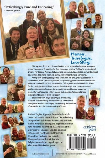 "Refreshingly Pure and Endearing" (The BookLife Prize) Chicagoans Todd and Jim embarked upon a grand adventure, an open-ended transfer to Brussels. For Jim, the expat posting fulfilled a professional dream. For Todd, a former global airline executive grappling to reinvent himself as a writer, the move from his family home meant more uprooting. Along with exciting escapades, their new life brought a succession of unexpected trials. The transplanted couple struggled to establish new roots. Isolation pushed Todd into depression. Office politics blindsided Jim. Even Sadie, their golden retriever, encountered strange new creatures—exotic snails and a precocious cat. Love, patience, and humor sustained them. Survival seemed within reach. But changing circumstances threatened to uproot them yet again. Seasoned with blogs covering a broad array of topics posted during their residency, the memoir transports readers to Europe, showcasing the realities of expat life and the true meaning of home.