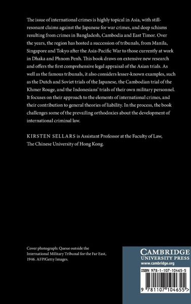 Foreword Simon Chesterman; Introduction Kirsten Sellars; 1. Treasonable conspiracies at Paris, Moscow, and Delhi: the legal hinterland of the Tokyo tribunal Kirsten Sellars; 2. Then and now: command responsibility, the Tokyo tribunal, and modern international criminal law Robert Cryer; 3. Colonial justice at the Netherlands Indies war crimes trials Lisette Schouten; 4. The superior orders defence at the postwar trials in Singapore Cheah Wui Ling; 5. The Khabarovsk trial: the Soviet riposte to the Tokyo tribunal Valentyna Polunina; 6. The People's Republic of China's 'lenient treatment' policy towards Japanese war criminals ¿sawa Takeshi; 7. Cambodia, 1979: trying Khmer Rouge leaders for genocide Tara Gutman; 8. Crimes against humanity in East Timor: the hearings at the Indonesian Ad Hoc Human Rights Court Mark Cammack; 9. Asia as the laboratory of the superior responsibility doctrine Rehan Abeyratne; 10. The two approaches to the superior orders plea Jia Bing Bing; 11. The joint criminal enterprise doctrine at the Extraordinary Chambers in the Courts of Cambodia Neha Jain; 12. Trials for international crimes in Bangladesh: prosecutorial strategies, defence arguments, and judgments M. Rafiqul Islam; 13. Theories of joint criminal responsibility at the Asian tribunals: Hong Kong, East Timor, Cambodia Nina H. B. Jørgensen; 14. The tribunals in Bangladesh: falling short of international standards Abdur Razzaq.