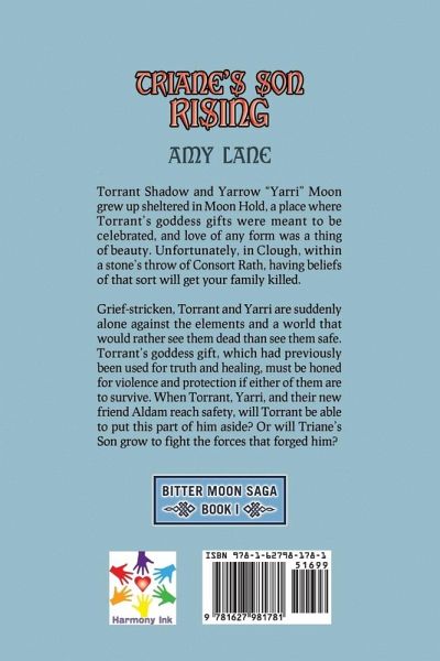 Bitter Moon Saga: Book One Torrant Shadow and Yarrow "Yarri" Moon grew up sheltered in Moon Hold, a place where Torrant's goddess gifts were meant to be celebrated, and love of any form was a thing of beauty. Unfortunately, in Clough, within a stone's throw of Consort Rath, having beliefs of that sort will get your family killed. Grief-stricken, Torrant and Yarri are suddenly alone against the elements and a world that would rather see them dead than see them safe. Torrant's goddess gift, which had previously been used for truth and healing, must be honed for violence and protection if either of them are to survive. When Torrant, Yarri, and their new friend Aldam reach safety, will Torrant be able to put this part of him aside? Or will Triane's Son grow to fight the forces that forged him?