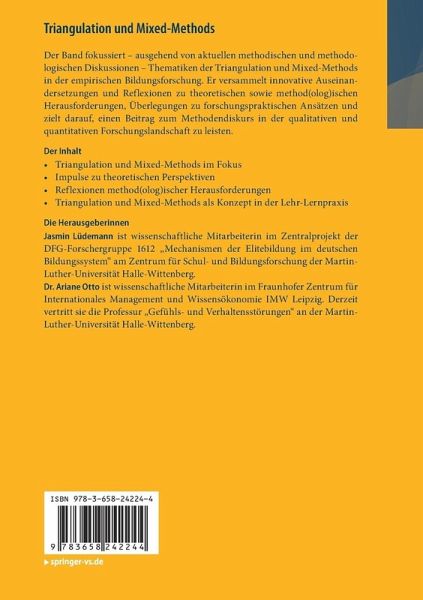 Der Band fokussiert - ausgehend von aktuellen methodischen und methodologischen Diskussionen -Thematiken der Triangulation und Mixed-Methods in der empirischen Bildungsforschung. Er versammelt innovative Auseinandersetzungen und Reflexionen zu theoretischen sowie method(olog)ischen Herausforderungen, Überlegungen zu forschungspraktischen Ansätzen und zielt darauf, einen Beitrag zum Methodendiskurs in der qualitativen Forschungslandschaft zu leisten.