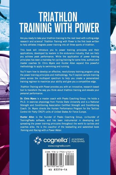 Are you ready to take your triathlon training to the next level with cutting-edge research and science? Triathlon Training with Power is the first book written to help athletes integrate power training into all three sports of triathlon. This book will introduce you to power training principles and their applications, developed by leaders in the endurance industry, can help you achieve peak performance. While the application of power training principles has been a mainstay for cycling training for some time, authors and master coaches Dr. Chris Myers and Hunter Allen expand this powerful methodology to apply to swimming and running. You'll learn how to develop an effective, revolutionary training program using the power training principles and methodology. You'll explore sample training plans across the multisport spectrum to help you create a personalized training regimen to maximize your ability and give you a competitive edge. Triathlon Training with Power provides you with an innovative, research-based tool to transform the way you think about triathlon training and elevate your personal performance.