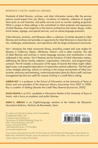 Hundreds of tribal libraries, archives, and other information centers offer the services patrons would expect from any library: circulation of materials, collection of singular items (such as oral histories), and public services (such as summer reading programs). What is unique in these settings is the commitment to tribal protocols and expressions of tribal lifeways-from their footprints on the land to their architecture and interior design, institutional names, signage, and special services, such as native language promotion. This book offers a collection of articles devoted to tribal libraries and archives and provides an opportunity for tribal librarians to share their stories, challenges, achievements, and aspirations with the larger professional community. Part one introduces the tribal community library, providing context and case studies for libraries in California, Alaska, Oklahoma, Hawai'i, and in other countries. The role of tribal libraries and archives in native language recovery and revitalization is also addressed in this section. Part two features service functions of tribal information centers, addressing the library facility, selection, organization, instruction, and programming/outreach. Part three includes a discussion of the types of records that tribes might collect, legal issues, and snapshot descriptions of noteworthy archival collections. The final part covers strategic planning, advice on working in the unique environments of tribal communities, advocacy and marketing, continuing education plans for library staff, and time management tips that are useful for anyone working in a small library setting.