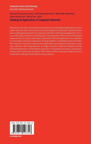 Tribological behaviour of composites materials.- Tribology properties of synthetic fibre reinforced composites.- Tribology properties of natural fibre reinforced composites.- The effect of fillers on the tribological properties of composites.- Tribological behaviour of polymer composites at elevated temperature.- The effect of size, length and orientation of the fibres on the tribological properties of composites.- Natural fibre composites as friction materials.- Dry sliding wear behavior of materials composites.- Wear properties of hybrid composites.- Scratch resistance of the polymer composites.- The effects of fibre loading of composites on the scratch resistance.- Lubrication effects on the tribological properties of the composites.- Tribological composites for biomedical applications.- Tribological composites for aerospace applications.- Tribological composites for automotive applications.