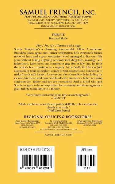 Characters: 3 male, 4 female Interior and Exterior Set Scottie Templeton's a charming, irresponsible fellow. A sometime Broadway press agent and former scriptwriter, he's everyone's friend, nobody's hero and a great womanizer who's managed to live over fifty years without taking anything seriously including love, marriage and fatherhood. Life's been one continuous gag. But at fifty one, he finds the script's been rewritten as a tragedy: he is fatally ill. His son Jud, alienated b