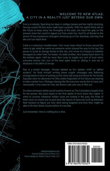 Cassandra Clare's The Mortal Instruments series meets V.E. Schwab's The Invisible Life of Addie LaRue with a dash of Disney+'s Loki in this new adult urban fantasy. WELCOME TO NEW ATLAS: A CITY WITHIN A REALITY JUST BEYOND OUR OWN. Evie is a nobody. Spending her days in college classes and her nights studying, having a social life has never really been a priority. With her sights firmly set on the future to keep away her thoughts of the past, she loses her grip on the present when her world is ripped out from under her. And it's all thanks to two mysterious strangers showing up on her doorstep, claiming that she can turn back time. Cade is a notorious troublemaker. He's never been afraid to throw around his name to get what he wants as someone who's clawed his way to the top. But power is quick to change hands in this city, and when he chooses to blatantly disregard an order from his leader, his older brother, he's tossed back down to the bottom again. He'll be more than lucky to regain any sort of trust when everyone knows he's one of the best spies there is, sliding in and out of shadows in the blink of an eye. Ren is a bored teenager. Always labeled as the "golden child" or "gifted student," he finds himself writing down cryptic messages and following strange leads, rather than putting on the same old song and dance for his family. Especially once he discovers his little stolen fragments of the future are starting to take a darker turn. Perhaps chasing the life everyone wants him to have isn't necessarily in the cards for him, but there's only one way to find out. So when someone within the secret society known as the Custodians targets Evie for her power, the clock starts in the final sprint to hunt down the culprit. In order to uncover whatever hidden clues are lurking in the past, the three of them have no choice but to peel back the layers of obscurity built up between their factions to figure out why she's being hunted and how they might be able to fix their bleak futures before it's too late. Just remember: time is nothing but a trick.