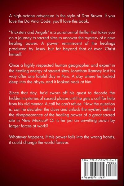 A high-octane adventure in the style of Dan Brown. If you love the Da Vinci Code, you'll love this book. "Tricksters and Angels" is a paranormal thriller that takes you on a journey to sacred sites to uncover the mystery of a new healing power. A power reminiscent of the healings produced by Jesus, but far beyond that of even Christ himself. Once a highly respected human geographer and expert in the healing energy of sacred sites, Jonathan Ramsey lost his way after one fateful day in Peru. A day where he looked deep into the abyss, and it looked back at him. Since that day, he'd sworn off his quest to decode the hidden mysteries of sacred places until he gets a call for help from his old mentor. A call he can't refuse. Now the question is, can he decipher the clues and unlock the mystery behind the disappearance of the healing power of a great sacred site in New Mexico? Or is he just an unwitting pawn by larger forces at work? Whatever happens, if this power falls into the wrong hands, it could change the world forever.