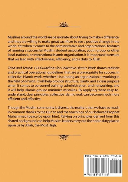 Muslims around the world are passionate about trying to make a difference, and they are willing to make great sacrifices to see a positive change in the world. Yet when it comes to the administrative and organizational features of running a successful Muslim student association, youth group, or other local, national, or international Islamic organization, it is important to ensure that we lead with effectiveness, efficiency, and a duty to Allah. Tried and Tested: 123 Guidelines for Collective Islamic Work shares realistic and practical operational guidelines that are a prerequisite for success in collective Islamic work, whether it is running an organization or working in the field of da'wah. It will help provide structure, clarity, and a clear purpose when it comes to personnel training, administration, and networking, and it will help Islamic groups minimize mistakes. By applying these easy-to-understand, clear principles, collective Islamic work can become much more efficient and effective.