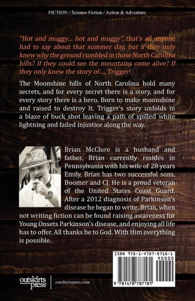 "Hot and muggy... hot and muggy", that's all anyone had to say about that August day. But if they only knew why the ground rumbled in those North Carolina hills? If they could see the mountains come alive? If they only knew the story of, Trigger! The Moonshine hills of North Carolina hold many secrets, and for every secret there is a story, and for every story there is a hero. Born to make moonshine and raised to destroy It. Trigger's story unfolds in a blaze of buck shot leaving a fiery path of spilled white lighting and failed injustice along the way.