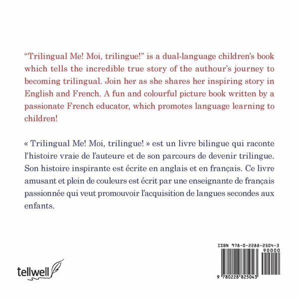 "Trilingual Me! Moi, trilingue!" is a dual-language children's book which tells the story of a girl who overcame many challenges on her journey to becoming trilingual. Join her as she shares her inspiring story in English and French. A fun and colourful dual-language picture book written by a passionate French educator which promotes language learning to children!