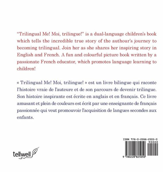 "Trilingual Me! Moi, trilingue!" is a dual-language children's book which tells the story of a girl who overcame many challenges on her journey to becoming trilingual. Join her as she shares her inspiring story in English and French. A fun and colourful dual-language picture book written by a passionate French educator which promotes language learning to children!