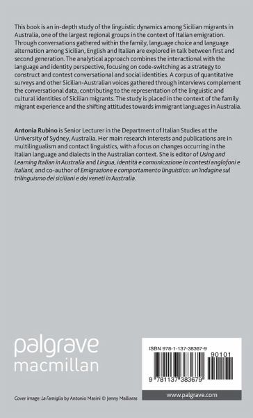 This book explores the linguistic and cultural identities of Sicilians in Australia, through conversations gathered within the family, survey data and interviews. The study is placed in the context of the family migrant experience and the shifting attitudes towards immigrant languages in Australia.