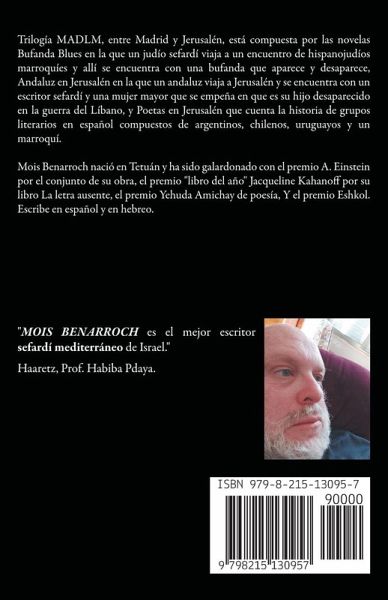 Trilogía MADLM, entre Madrid y Jerusalén, está compuesta por las novelas Bufanda Blues en la que un judío sefardí viaja a un encuentro de hispanojudíos marroquíes y allí se encuentra con una bufanda que aparece y desaparece, Andaluz en Jerusalén en la que un andaluz viaja a Jerusalén y se encuentra con un escritor sefardí y una mujer mayor que se empeña en que es su hijo desaparecido en la guerra del Líbano, y Poetas en Jerusalén que cuenta la historia de grupos literarios en español compuestos de argentinos, chilenos, uruguayos y un marroquí. Mois Benarroch nació en Tetuán y ha sido galardonado con el premio A. Einstein por el conjunto de su obra, el premio "libro del año" Jacqueline Kahanoff por su libro La letra ausente, el premio Yehuda Amichay de poesía, Y el premio Eshkol. Escribe en español y en hebreo.