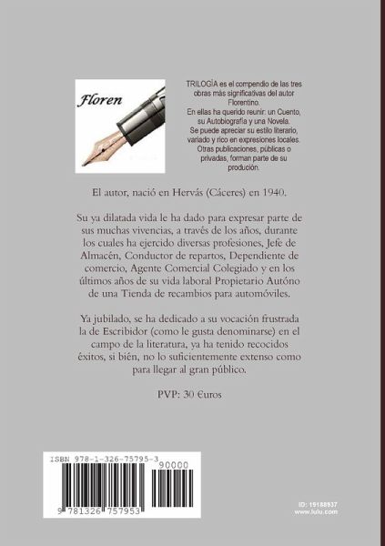 TRILOGÏA , es el compendio de tres de las obras más representativas del autor Florentino Santos Barbero, autor autodidacta con una larga trayectoria literaria.