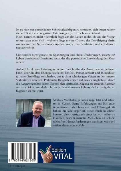Ist es möglich, sich vor persönlichen Schicksalsschlägen zu schützen, sich ihnen zu entziehen? Kann man negativen Erfahrungen gar einfach ausweichen? Nein, natürlich nicht - letztlich fragt uns das Leben nicht, ob uns das Vorgesetzte passt oder nicht, vielmehr liegt unsere Chance der Bewältigung darin, wie wir mit den Situationen umgehen, wie wir sie bearbeiten und uns danach neu ausrichten.Und sind es nicht gerade die Spannungen und Herausforderungen, welche ein Leben bereichern? Bestimmt nicht das die persönliche Entwicklung des Menschen? Anhand konkreter Lebensgeschichten beschreibt der Autor, wie es gelingen kann, über die drei Ebenen des Seins: Umfeld, Persönlichkeit und Individualität eine Grundlage zu schaffen, um auch in schwierigen Zeiten an der inneren Stabilität zu arbeiten. Praktische Beispiele zeigen auf, wie es möglich ist, durch die Ausgewogenheit jener Ebenen den optimalen Zugang zu unseren Ressourcen zu stärken, um dadurch das Schicksal unseres Lebens als Lernaufgabe erfolgreich zu meistern.