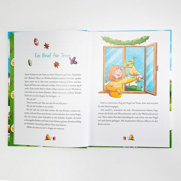 Weihnachtskind Trine bekommt Post vom Osterhasen, der bittet Trine um Hilfe, weil auf der Osterinsel immer noch Winter herrscht und er doch so auf