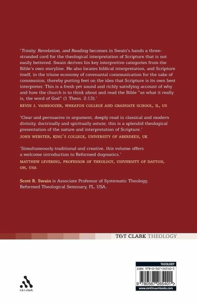 Trinity, Revelation, and Reading (TRR) is a theological introduction to the Bible and biblical interpretation. The overarching thesis is that neither the Bible nor biblical hermeneutics can be understood or practiced properly apart from an appreciation of their relationship to the triune God and his gracious economy of redemption. Scott Swain treats the role of the Word in the saving economy of the triune God, the role and status of Scripture as the Word of God, the nature of biblical reading as a covenantal enterprise, as well as a host of other related topics. These topics are addressed by way of a constructive appropriation, or ressourcement, of many of the themes of patristic theology and early Protestant divinity (esp. Reformed Orthodoxy), while building upon the work of important contemporary theologians as well (e.g., Karl Barth, John Webster, Kevin Vanhoozer). The ultimate goal of this study is that readers will appreciate better the ways in which biblical interpretation is an aspect of their covenantal engagement with the triune God.