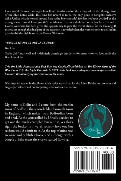 When the Evening begins with a game of chance it can only have one outcome , someone will win and someone will loose. Honeysuckle has once again got herself into trouble and on the wrong side of the Management of the Blue Lotus Club. This time her reward is to be the only prize in tonight's exclusive raffle. Unlike what is normal around here today Honeysuckle's fate has not been decided by the management. Instead Honeysuckle's punishment has been dealt by one of her least favourite Flower Girls who has also been given the opportunity to pick the clothing for Honeysuckle together with the overall theme for the Evening. If that wasn't enough the final part of the equation is revealed when the winner comes to collect his prize in this the fifth book in the Flower Girls series. ~BONUS SHORT STORY INCLUDED~ Bad Day Today didn't start well and it definitely doesn't get any better for many who step foot inside the Blue Lotus Club. Trip the Light Fantastic and Bad Day was Originally published as The Flower Girls of the Blue Lotus Trip the Light Fantastic in 2021. This book has undergone some major rewrites; however, the underlying stories remains the same. Warning: All stories in the Flower Girls series are written for the Adult Reader and contain bad language, violence and not forgetting scenes of a sexual nature.