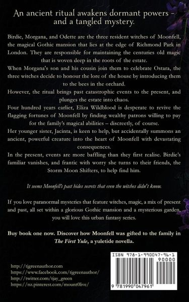 An ancient ritual awakens dormant powers - and a tangled mystery. Birdie, Morgana, and Odette are the three resident witches of Moonfell, the magical Gothic mansion that lies at the edge of Richmond Park in London. They are responsible for maintaining the centuries old magic that is woven deep in the roots of the estate. When Morgana's son and his cousin join them to celebrate Ostara, the three witches decide to honour the lore of the house by introducing them to the bees in the orchard. However, the ritual brings past catastrophic events to the present, and plunges the estate into chaos. Four hundred years earlier, Eliza Wildblood is desperate to revive the flagging fortunes of Moonfell by finding wealthy patrons willing to pay for the family's magical abilities - discreetly, of course. Her younger sister, Jacinta, is keen to help, but accidentally summons an ancient, powerful creature into the heart of Moonfell with devastating consequences. In the present, events are more baffling than they first realise. Birdie's familiar vanishes, and frantic with worry she turns to their friends, the Storm Moon Shifters, to help find him. It seems Moonfell's past hides secrets that even the witches didn't know. If you love paranormal mysteries that feature witches, magic, a mix of present and past, all set within a glorious Gothic mansion and a mysterious garden, you will love this urban fantasy series. Buy book one now. Discover how Moonfell was gifted to the family in The First Yule, a yuletide novella.