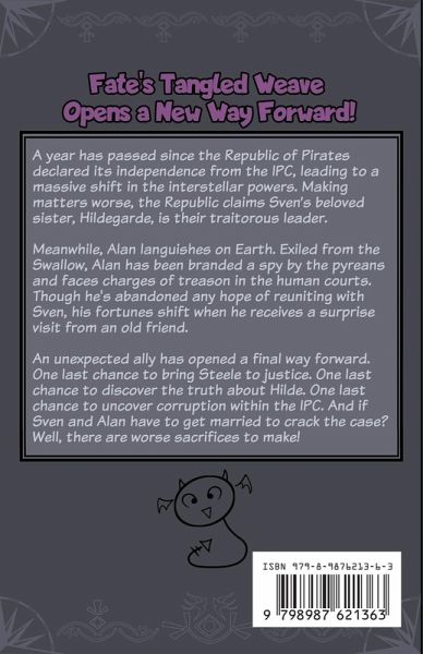A year has passed since the Republic of Pirates declared its independence from the IPC, leading to a massive shift in the interstellar powers. Making matters worse, the Republic claims Sven's beloved sister, Hildegarde, is their traitorous leader. Meanwhile, Alan languishes on Earth. Exiled from the Swallow, Alan has been branded a spy by the pyreans and faces charges of treason in the human courts. Though he's abandoned any hope of reuniting with Sven, his fortunes shift when he receives a surprise visit from an old friend. An unexpected ally has opened a final way forward. One last chance to bring Steele to justice. One last chance to discover the truth about Hilde. One last chance to uncover corruption within the IPC. And if Sven and Alan have to get married to crack the case? Well, there are worse sacrifices to make! Threads Unbound is the fourth book in the Triple Strike series, and it includes seven illustrations plus additional bonus content.