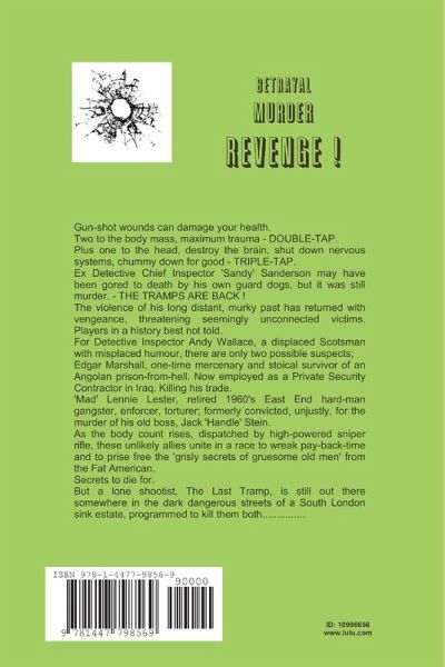 Ex Detective Chief Inspector 'Sandy' Sanderson may have been gored to death by his own guard dogs, but it was still murder. An unknown marksman, 'The Last Tramp', is compiling a roll call of the dead. Old mysteries and conspiracies have violently resurfaced and threaten former policemen, gangsters and mercenaries, unaware of their part in a history best not told; DI Andy Wallace, a displaced Scotsman of misplaced humour; Edgar Marshall, private soldier, survivor of an Angolan prison from Hell; 'Mad' Lennie Lester, 1960's gangster, torturer, wrongly convicted of the murder of his old Boss, Jack 'Handle' Stein, who's ghost has returned to haunt them. Only the cold-blooded extraction of the 'grisly secrets of gruesome old men' from the Fat American may save them. But a heavy price must be paid as a terrible truth awaits them on a South London sink estate primed to explode with racial tension.
