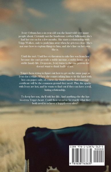 Ivory Osburn is a determined single mom with a six-year-old son she fiercely protects. She's kept her child a secret from the charming cowboy billionaire, Tripp Walker, despite her growing feelings for him. Just when she thinks she has everything under control, her ex threatens to take her son away due to her unstable situation. Desperate and out of options, Ivory turns to Tripp with an unexpected proposal-a marriage on paper to provide the stable family image she needs to keep her son away from her abusive ex. Tripp, who's been longing to bridge the gap between them, agrees. The sparks between them are undeniable, and he hopes this fake marriage might lead to something real. As they navigate their new situation, Ivory and Tripp also find their very real feelings deepening. But can they overcome their pasts and trust each other enough to turn their marriage-on-paper into a true happily-ever-after? With themes of second chances, overcoming obstacles, and the transformative power of love, this sweet cowboy romance novel will warm your heart and leave you rooting for Ivory and Tripp to find their way to each other.