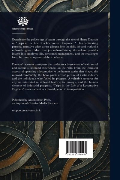 Experience the golden age of steam through the eyes of Henry Dawson in "Trips in the Life of a Locomotive Engineer." This captivating personal narrative offers a rare glimpse into the daily life and work of a railroad engineer. More than just railroad history, this volume provides insight into employee life, personnel management, and the challenges faced by those who powered the iron horse. Dawson's account transports the reader to a bygone era of train travel and recounts firsthand experiences on the rails. From the technical aspects of operating a locomotive to the human stories that shaped the railroad community, this book paints a vivid picture of a vital industry and the individuals who fueled its progress. A valuable resource for anyone interested in railroad history, technology, and the human element of industrial progress, "Trips in the Life of a Locomotive Engineer" is a testament to a pivotal period in transportation. This work has been selected by scholars as being culturally important, and is part of the knowledge base of civilization as we know it. This work is in the public domain in the United States of America, and possibly other nations. Within the United States, you may freely copy and distribute this work, as no entity (individual or corporate) has a copyright on the body of the work. Scholars believe, and we concur, that this work is important enough to be preserved, reproduced, and made generally available to the public. We appreciate your support of the preservation process, and thank you for being an important part of keeping this knowledge alive and relevant.