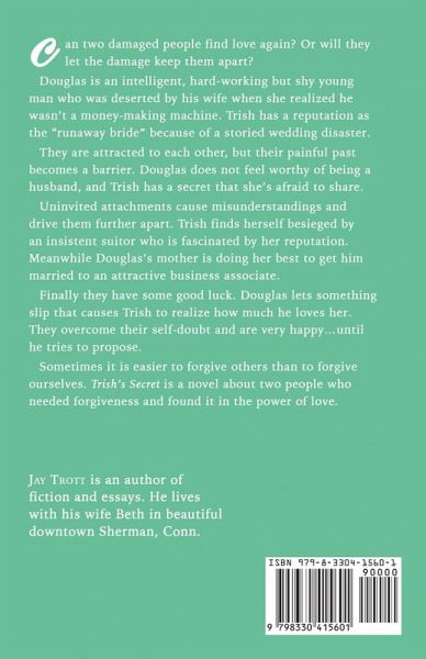 Douglas is a serious young man with a serious blot on his resume-abandonment and divorce from his wife of four months. For eight years he's been beating himself up over it and feeling like a failure. Trish also has some debilitating shade in her past, having run away from the altar at the tender age of 22. In her mind she has a terrible secret and is not sure if she will ever be able to marry. As Douglas's brother puts it, she's the runaway bride, and he's the guy whose bride ran away. Against all expectations they find themselves strongly attracted to each other. But because of their histories and past suffering they have a hard time getting together. And just when they do, everything falls apart. Trish's Secret is a tender tale about two deeply damaged people who are afraid of attachment. Follow them as they try to overcome the world and their own sense of inadequacy.