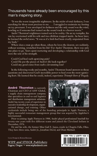 Thousands have already been encouraged by this man's inspiring story. ""It was the worst imaginable nightmare. In the midst of total darkness, I was searching for those most precious to me. . . . I struggled to maintain my footing on icy pavement. I was enveloped in darkness and the only sound was the wind, howling as if someone had turned on the sound track to a horror movie."" Andre Thornton's nightmare turned out to be reality. On an icy turnpike, his van lay overturned with his wife and two children trapped inside. An hour later, he learned the awful news. ""It was as if a limb had been cruelly amputated from my body."" Where does a man go when those, whom he loves the dearest, are suddenly, without warning, wrenched from his life? For Andre Thornton, there was only one place to go. Years spent nurturing and developing a relationship with God were his sole of strength. Could God heal such agonizing pain? Could He put the pieces of Andre's life back together? Could any good come from such a devastating loss? In the following weeks and months, Andre Thornton found answers to those questions and discovered God's incredible power to heal even the most agonizing hurt. He learned that he could, indeed, experience Triumph Born of Tragedy.