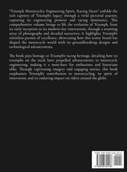 "Triumph Motorcycles: Engineering Spirit, Racing Heart" unfolds the rich tapestry of Triumph's legacy through a vivid pictorial journey, capturing its engineering prowess and racing dominance. This comprehensive volume brings to life the evolution of Triumph, from its early inception to its modern-day innovations, through a stunning array of photographs and detailed narratives. It highlights Triumph's relentless pursuit of excellence, showcasing how this iconic brand has shaped the motorcycle world with its groundbreaking designs and technological advancements. The book pays homage to Triumph's racing heritage, detailing how its triumphs on the track have propelled advancements in motorcycle engineering, making it a must-have for enthusiasts and historians alike. Through captivating imagery and engaging stories, this book emphasizes Triumph's contribution to motorcycling, its spirit of innovation, and its enduring impact on riders around the globe.