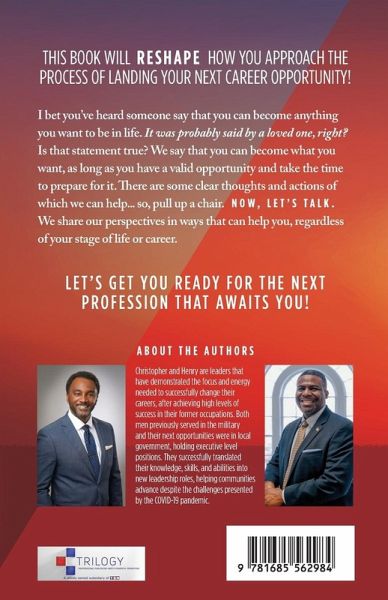 THIS BOOK WILL RESHAPE HOW YOU APPROACH THE PROCESS OF LANDING YOUR NEXT CAREER OPPORTUNITY! I bet you've heard someone say that you can become anything you want to be in life. It was probably said by a loved one, right? Is that statement true? We say that you can become what you want, as long as you have a valid opportunity and take the time to prepare for it. There are some clear thoughts and actions of which we can help...so, pull up a chair. NOW, LET'S TALK. We share our perspectives in ways that can help you, regardless of your stage of life or career. LET'S GET YOU READY FOR THE NEXT PROFESSION THAT AWAITS YOU!
