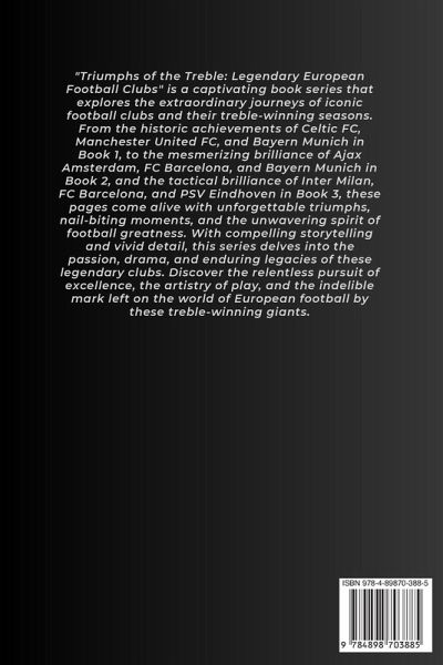 Get ready for a thrilling journey through the annals of European football as we unveil the untold stories of triumph and glory in "Triumphs of the Treble: Legendary European Football Clubs - Volume 2." This captivating volume takes you on a riveting adventure through the treble-winning seasons of four iconic clubs: Ajax Amsterdam, FC Barcelona, and Bayern Munich. Brace yourself for an exhilarating ride that delves deep into the heart and soul of these legendary clubs, revealing the highs, lows, and the ultimate triumphs that forever etched their names in football history. In "Triumphs of the Treble: Legendary European Football Clubs - Volume 2," we unveil the secrets behind the rise of Total Football and its profound influence on Ajax Amsterdam's historic 1971-1972 season. Witness their domination of the Eredivisie, their captivating journey through the KNVB Cup, and their unforgettable run in the UEFA Champions League. Relive the defining moments, the unforgettable performances, and the ultimate triumph that solidified their place among the football elite. Shift your focus to FC Barcelona's remarkable 2008-2009 season, where the era of Pep Guardiola transformed the club into an unstoppable force. Experience the battle for La Liga supremacy, their pursuit of the Copa del Rey, and their mesmerizing UEFA Champions League campaign. Discover how their iconic style of play captivated the world and witness the triumphant final that crowned them as the kings of European football. Finally, immerse yourself in the unrivaled success of Bayern Munich in their memorable 2019-2020 season. Witness their Bundesliga triumph, their exhilarating DFB-Pokal journey, and their awe-inspiring run in the UEFA Champions League. Experience the heart-pounding moments, the tactical brilliance, and the sheer determination that propelled them to treble glory. "Triumphs of the Treble: Legendary European Football Clubs - Volume 2" is a celebration of the icons, the legends, and the key figures who left an indelible mark on the beautiful game. Through meticulously researched accounts, captivating storytelling, and exclusive insights, this book offers an unprecedented glimpse into the legacy and impact of these treble-winning seasons. Whether you're a die-hard fan, a casual observer, or a curious newcomer to the world of football, "Triumphs of the Treble: Legendary European Football Clubs - Volume 2" is a must-read. Don't miss your chance to relive the exhilaration, the drama, and the glory of these historic seasons. Invest in this remarkable journey and discover the untold stories that shaped the destiny of these legendary clubs. Get your copy today and be swept away by the triumphs of the treble!