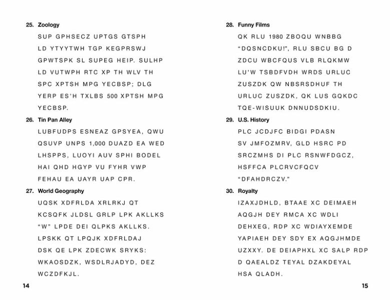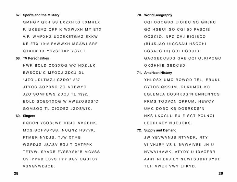 A collection of 300 cryptograms that reveal fun trivia facts once theyâ re solved.