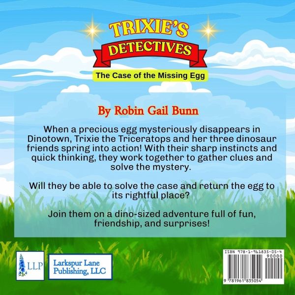 In the vibrant world of Dinotown, where dinosaurs of all shapes and sizes live in harmony, something unthinkable has happened-a precious egg has gone missing! The whole town is in a panic, and it's up to Trixie the Triceratops and her four dinosaur friends to crack the case. Together, this brave and clever team, each with their unique strengths, spring into action to solve the mystery before it's too late. Trixie, with her sharp instincts, leads the charge alongside Toby the T-Rex, whose sense of smell is unmatched; Steve the Stegosaurus, a gentle giant and steadfast friend, and Tara the Pterodactyl, whose aerial view gives them an edge. As they follow a trail of mysterious footprints, puzzling riddles, and unexpected twists, they discover that this isn't just a simple case of theft. There's more to the story, and they'll need to use all their smarts, teamwork, and determination to solve the mystery and return the egg to its rightful place. Join Trixie and her friends on a dino-sized adventure filled with action, friendship, and surprising discoveries that will leave you guessing until the very end!