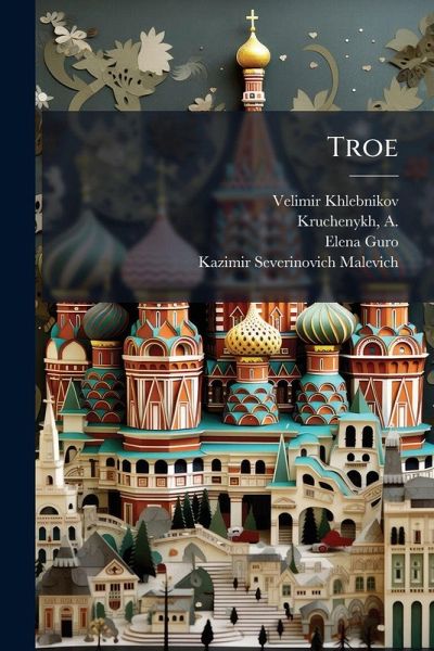 "Troe" is a rare collection of early 20th-century Russian Futurist poetry and artwork by Velimir Khlebnikov, A. Kruchenykh, Elena Guro, and Kazimir Malevich. Published in 1913, this anthology represents the avant-garde movement's bold experimentation with language, form, and visual aesthetics. The collection exemplifies the spirit of innovation that characterized the Silver Age of Russian literature and art. "Troe" is significant for its influence on subsequent generations of poets and artists, offering insight into the radical artistic landscape of pre-revolutionary Russia. This work has been selected by scholars as being culturally important, and is part of the knowledge base of civilization as we know it. This work was reproduced from the original artifact, and remains as true to the original work as possible. Therefore, you will see the original copyright references, library stamps (as most of these works have been housed in our most important libraries around the world), and other notations in the work. This work is in the public domain in the United States of America, and possibly other nations. Within the United States, you may freely copy and distribute this work, as no entity (individual or corporate) has a copyright on the body of the work. As a reproduction of a historical artifact, this work may contain missing or blurred pages, poor pictures, errant marks, etc. Scholars believe, and we concur, that this work is important enough to be preserved, reproduced, and made generally available to the public. We appreciate your support of the preservation process, and thank you for being an important part of keeping this knowledge alive and relevant.