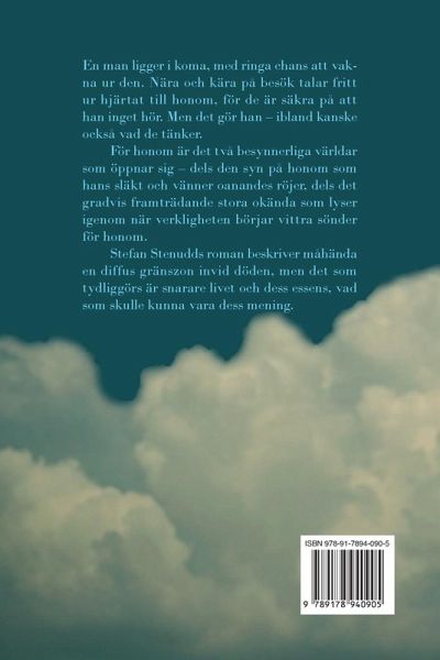 En man ligger i koma, med ringa chans att vakna ur den. Nära och kära på besök talar fritt ur hjärtat till honom, för de är säkra på att han inget hör. Men det gör han – ibland kanske också vad de tänker. För honom är det två besynnerliga världar som öppnar sig – dels den syn på honom som hans släkt och vänner oanandes röjer, dels det gradvis framträdande stora okända som lyser igenom när verkligheten börjar vittra sönder för honom. Stefan Stenudds roman beskriver måhända en diffus gränszon invid döden, men det som tydliggörs är snarare livet och dess essens, vad som skulle kunna vara dess mening. Stefan Stenudd, född 1954 i Stockholm, numera boende i Malmö, är författare, frilansjournalist, konstnär och instruktör i den fridsamma japanska kampkonsten aikido. Han är också idéhistoriker, med skapelsemyter som sitt forskningsfält. Förutom sina svenska böckerna har han skrivit ett antal romaner och fackböcker på engelska.