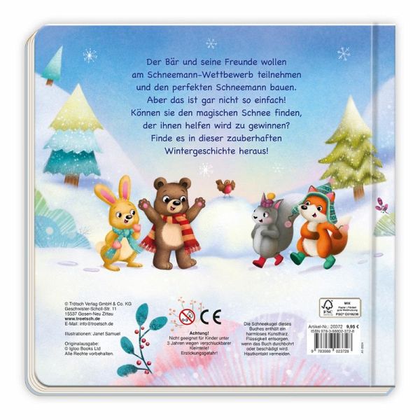 Dies zauberhafte Wintergeschichte zeigt, was man mit Freunden alles schaffen kann: Der Bär und seine Freunde wollen am Schneemann-Wettbewerb teilnehmen und den perfekten Schneemann bauen. Aber das ist gar nicht so einfach! Können sie den magischen Schnee finden, der ihnen helfen wird zu gewinnen? Eine liebevolle Geschichte zum gemeinsamen Vorlesen - ideal für die Winterzeit!