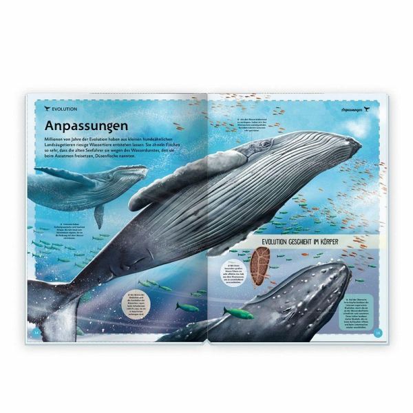 In den Tiefen der Ozeane leben die größten Säugetiere dieser Erde. Wovon ernähren sich Wale? Wie kommunizieren sie über weite Distanzen miteinander? Und wieso sind so viele der Arten heutzutage vom Aussterben bedroht? Dieses Sachbuch nimmt junge Leser mit auf eine spannende Reise in die Unterwasserwelt, beleuchtet das Verhalten und die Eigenheiten unterschiedlicher Wal-Arten und erklärt, welche Auswirkungen Klimawandel und Umweltverschmutzung auf die großen Meeresbewohner haben. Mit lehrreichen Texten, faszinierenden Bildern und übersichtlichen Artenportraits.