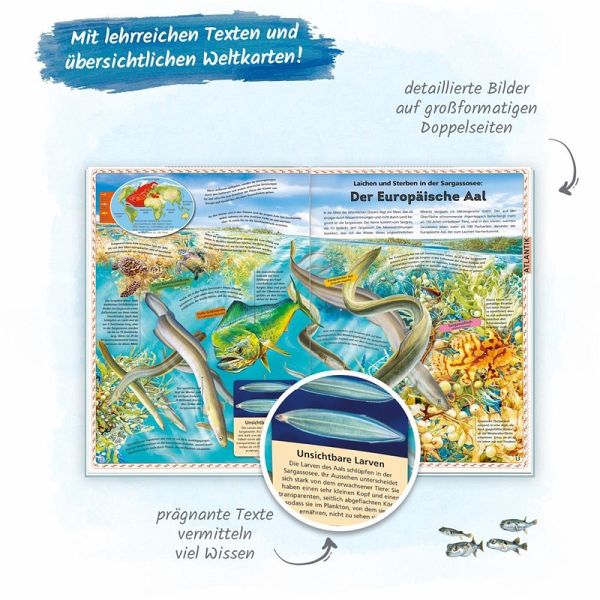 In den Tiefen der Ozeane liegt eine verborgene Welt. Welche Tiere sind in diesen unendlichen Weiten zu finden? Wie leben sie? Und warum ist ihr Lebensraum gefährdet? Dieses Sachbuch nimmt junge Leser mit auf eine spannende Reise in die Unterwasserwelt, stellt viele verschiedene Meeresbewohner vor und erklärt, welche Auswirkungen Klimawandel und Umweltverschmutzung für die Ozeane und ihre Bewohner haben. Mit lehrreichen Texten, faszinierenden Bildern und übersichtlichen Weltkarten.