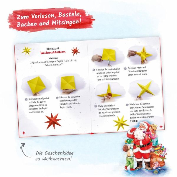 Dieses farbenfrohe und liebevoll illustrierte Buch vereint wunderbare Geschichten, bekannte Lieder, tolle Bastelanleitungen und schmackhafte Rezepte zur Weihnachtszeit. Damit ist der Advent gefüllt mit weihnachtlichem Vorlesen, Singen, Basteln und Naschen! Da macht das Warten auf den Weihnachtsmann gleich viel mehr Freude!