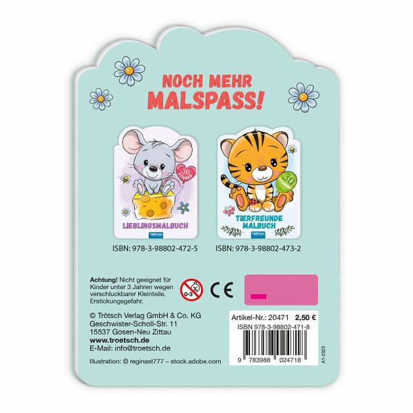 Mit diesem tierischen Ausmalspaß kommt keine Langeweile auf! Auf den fröhlichen Vorlagen können kleine und große Künstler ihrer Kreativität freien Lauf lassen und ihre Kunstwerke anschließend mit mehr als 30 tollen Glitzerstickern dekorieren. Dank der handlichen Größe passt das Malbuch bequem in jede Tasche.