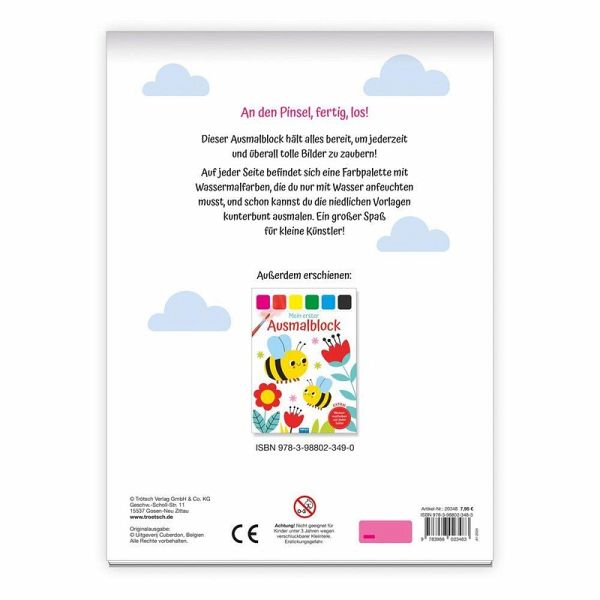 Mit diesem tollen Ausmalblock können kleine Künstler überall und zu jeder Zeit farbenfrohe Kunstwerke schaffen! Auf jeder Seite befindet sich eine Farbpalette mit Wassermalfarben, die nur mit Wasser angefeuchtet werden müssen, und schon können die niedlichen Vorlagen kunterbunt ausgemalt werden.