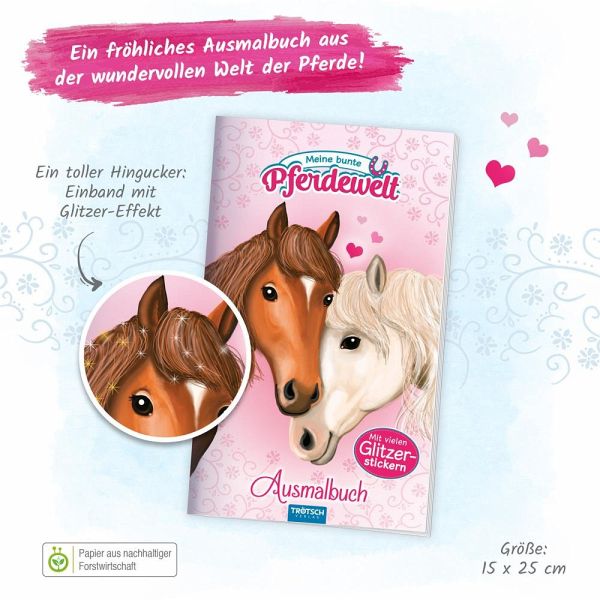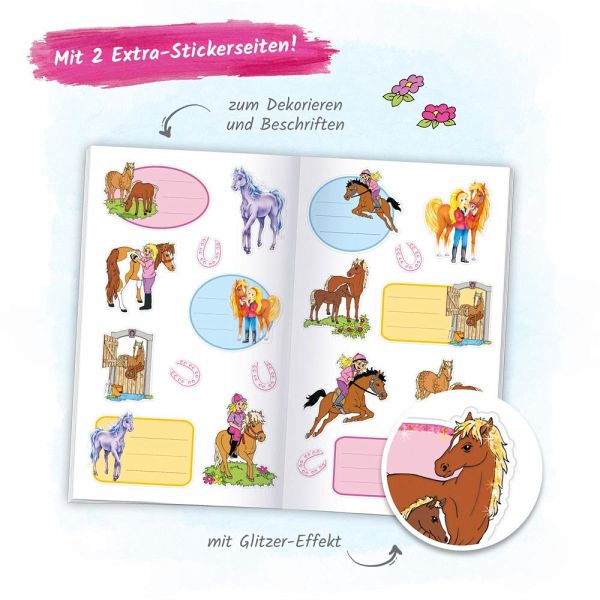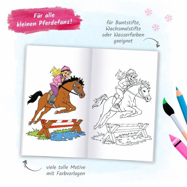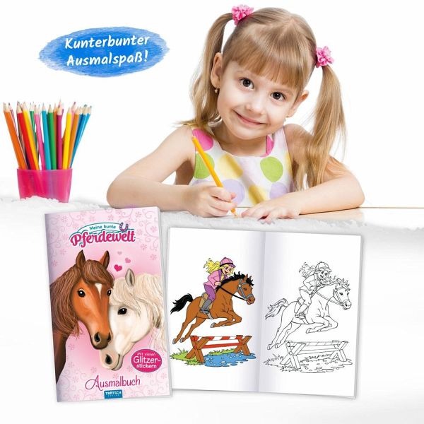 Auf die Stifte, fertig, los! In diesem tollen Malbuch können kleine Pferdefans ihrer Kreativität freien Lauf lassen und dabei spielerisch ihre Feinmotorik schulen. Tolle Vorlagen und süße Glitzersticker garantieren Ausmalspaß für viele kunterbunte Stunden!