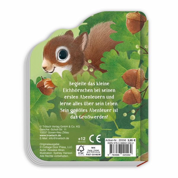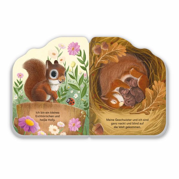 Das größte Abenteuer ist das Großwerden! Das weiß auch das kleine Eichhörnchen Holly. Die liebevoll illustrierte Geschichte in diesem Pappenbuch begleitet sie bei ihren ersten Abenteuern und vermittelt schon den Kleinsten ganz intuitiv erstes Wissen über das Leben eines Eichhörnchens.