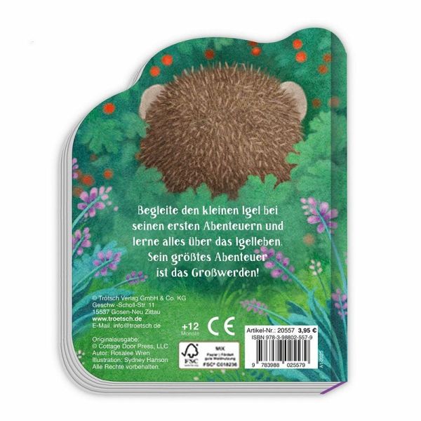 Das größte Abenteuer ist das Großwerden! Das weiß auch der kleine Igel Piet. Die liebevoll illustrierte Geschichte in diesem Pappenbuch begleitet ihn bei seinen ersten Abenteuern und vermittelt schon den Kleinsten ganz intuitiv erstes Wissen über das Igelleben.